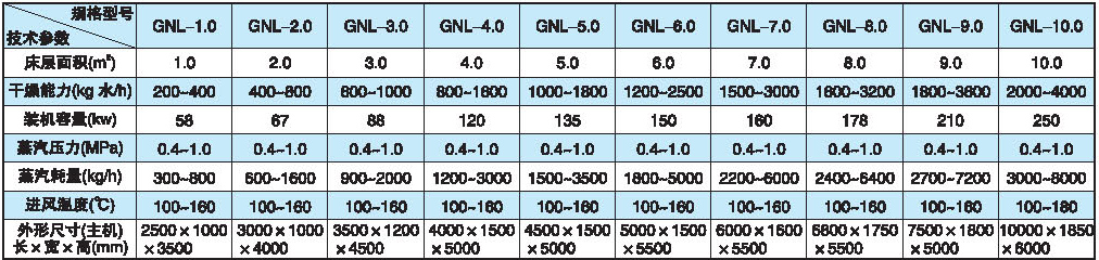 ◆ 節(jié)能高效,由于大部分熱量是由換熱效率約在90%的埋置在料層中的蒸汽加熱盤管提供,流化用熱空氣主要作為保證正常流態(tài)化的動(dòng)力,比原有流化床干燥機(jī)所需熱空氣量大大降低,因此整個(gè)系統(tǒng)能耗及排氣熱損失也相應(yīng)的大大降低,提高了干燥效率。